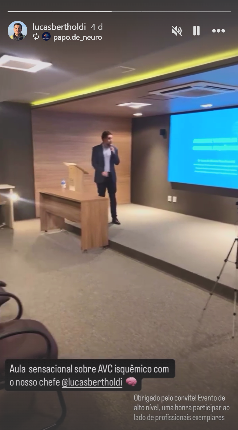 Em novembro, participei da I Jornada de Neurologia do Norte do Paraná e ministrei uma aula sobre Acidente Vascular Cerebral Isquêmico (AVCi), destacando não